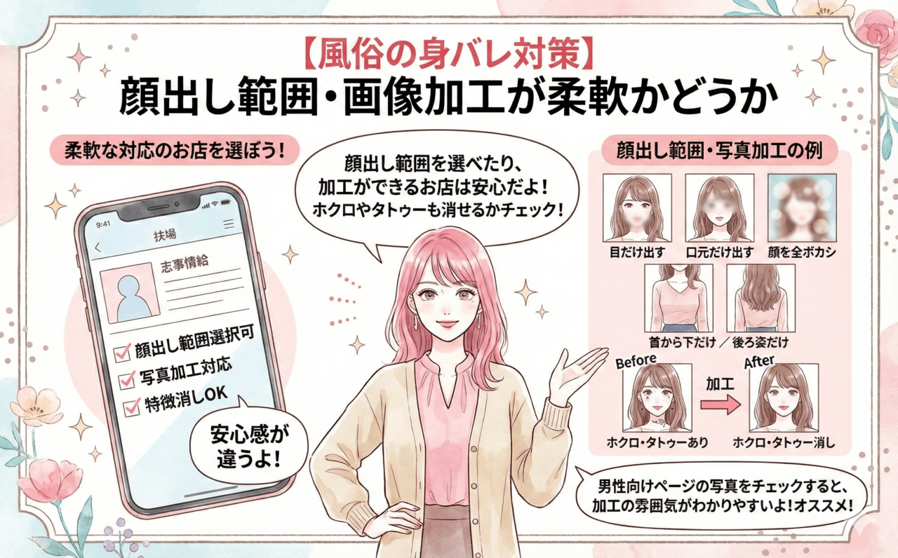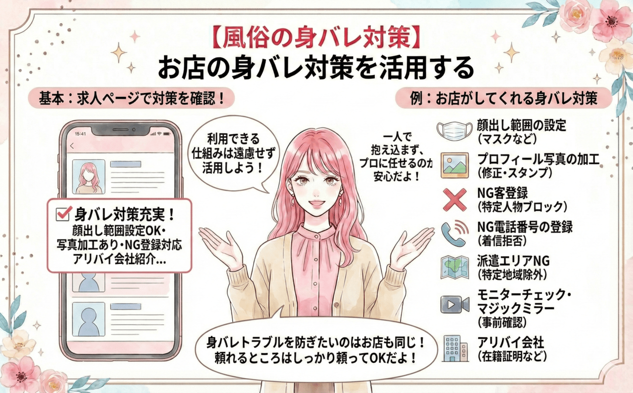 - 身バレ対策が整ったお店を選ぶことでリスクを下げられる