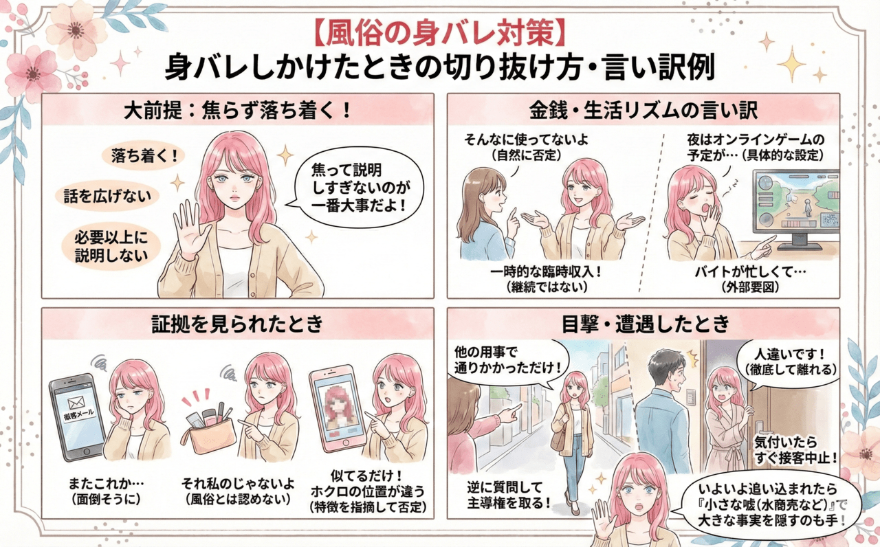 - 身バレしかけたときの切り抜け方・言い訳例